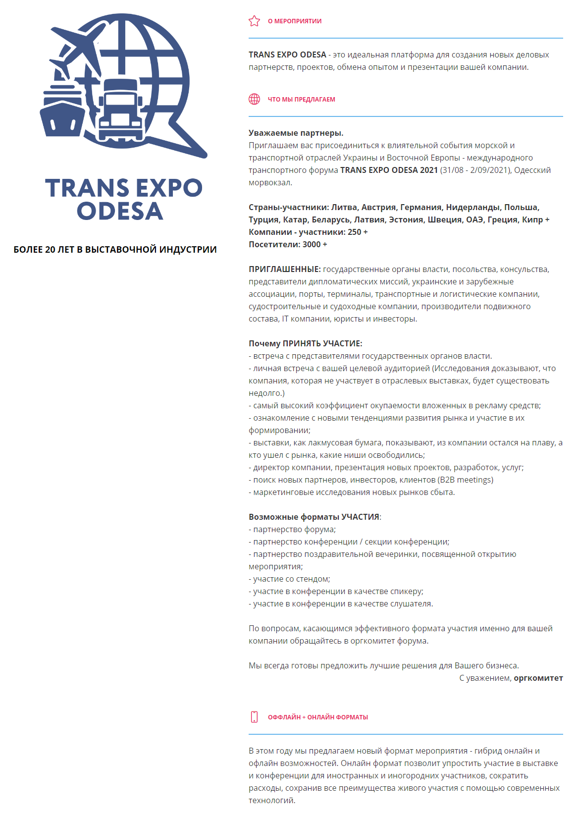 Сайт выставки: http://trans-expo-odessa.com/ru