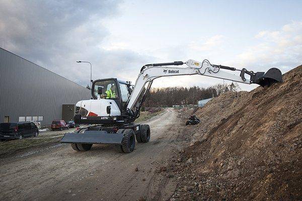 В данной модели экскаватора на колесах, если потребуется, может быть установлены навесные устройства к трем контурам. Остается добавить, что разработка двигателя D-24, является собственной разработкой фирмы, а сама модель уже является серийной. Можно быть уверенными, что ее ждет успех, как и E 55 W.