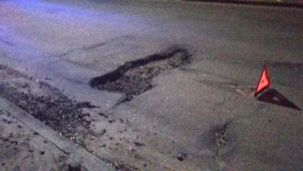Между прочим, огромная выбоина посреди дороги, в которую попал горе-водитель, расположенная прямо под носом у Службы автомобильных дорог области, за квартал от их офиса. Однако эту яму дорожники области прошли мимо, поскольку содержание городских дорог - компетенция иной службы, КП "ЧЕЛУАШ".